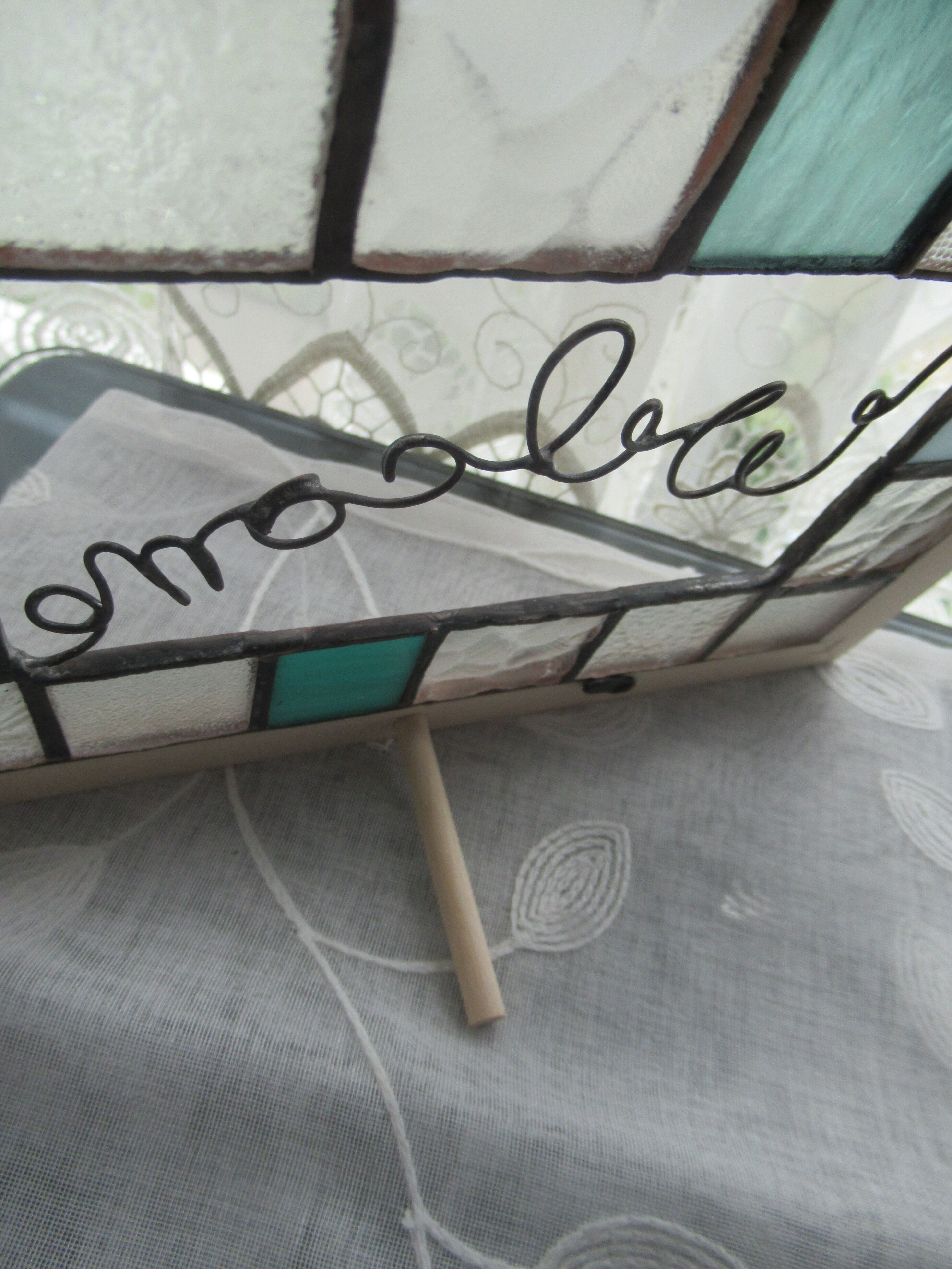昭和ガラス(それ以外のガラスも含みます)を使用したレトロなステンドグラス+ワイヤーアートのパネルです。