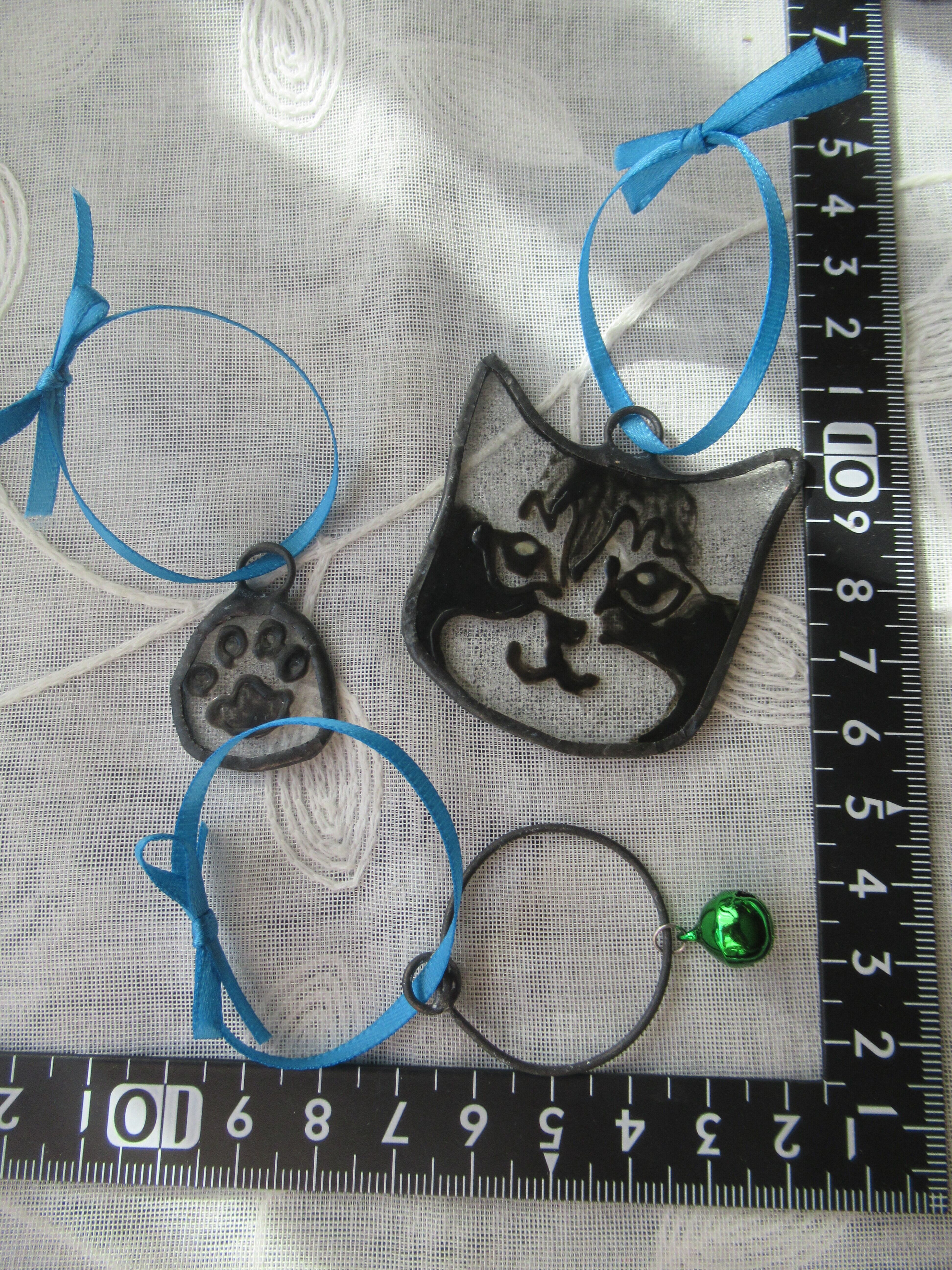 可愛い猫をモチーフにした【18】サンキャッチャー 猫3点セットは、心和むデザインとともに、愛らしい鈴付きの首輪や肉球が特徴です。レトロな昭和ガラスを使用し、光を受けて色とりどりに輝く様子は、お部屋に独特の雰囲気を与えます。安心の鉛フリーで作られており、安全性にも配慮しています。