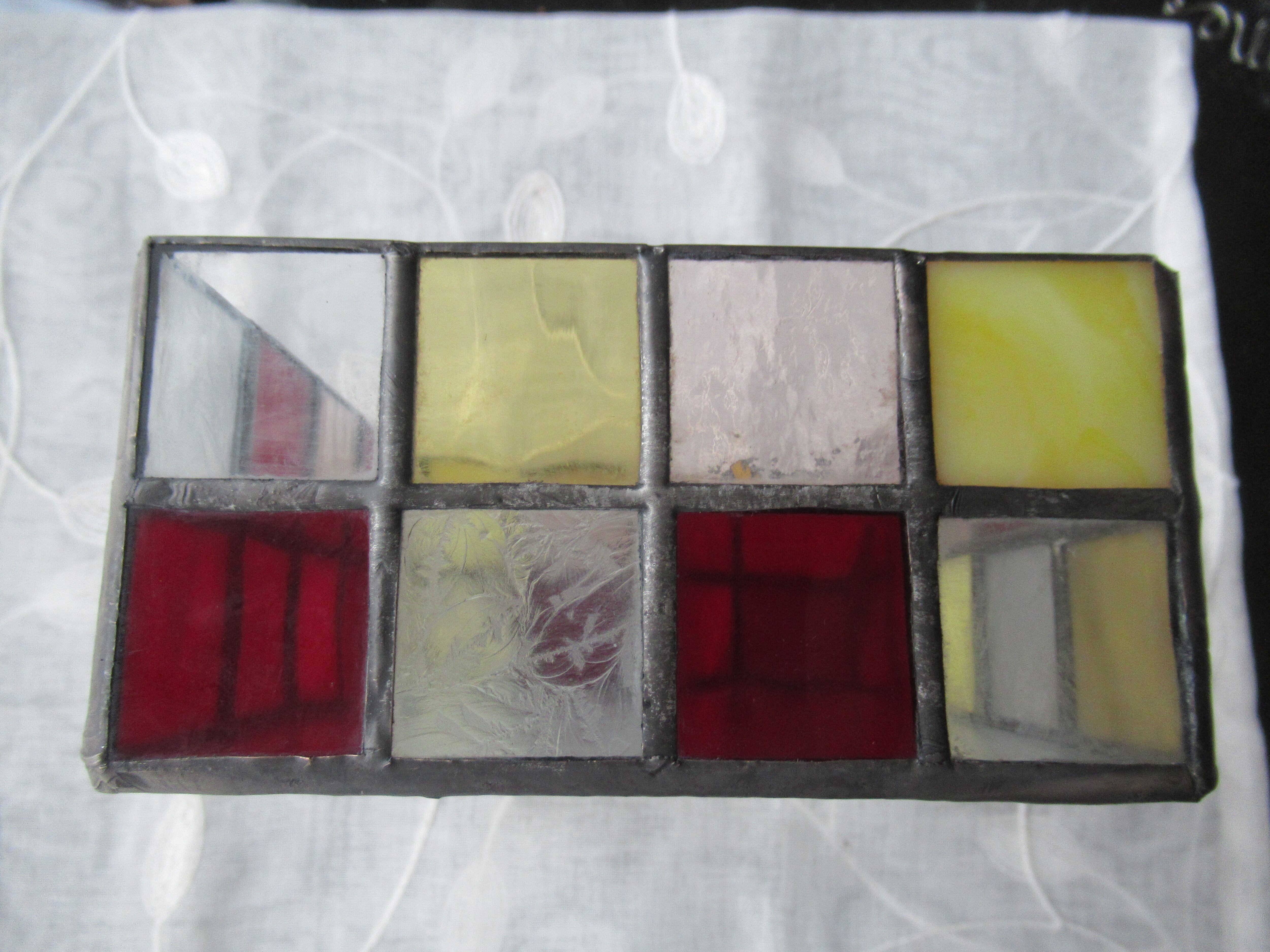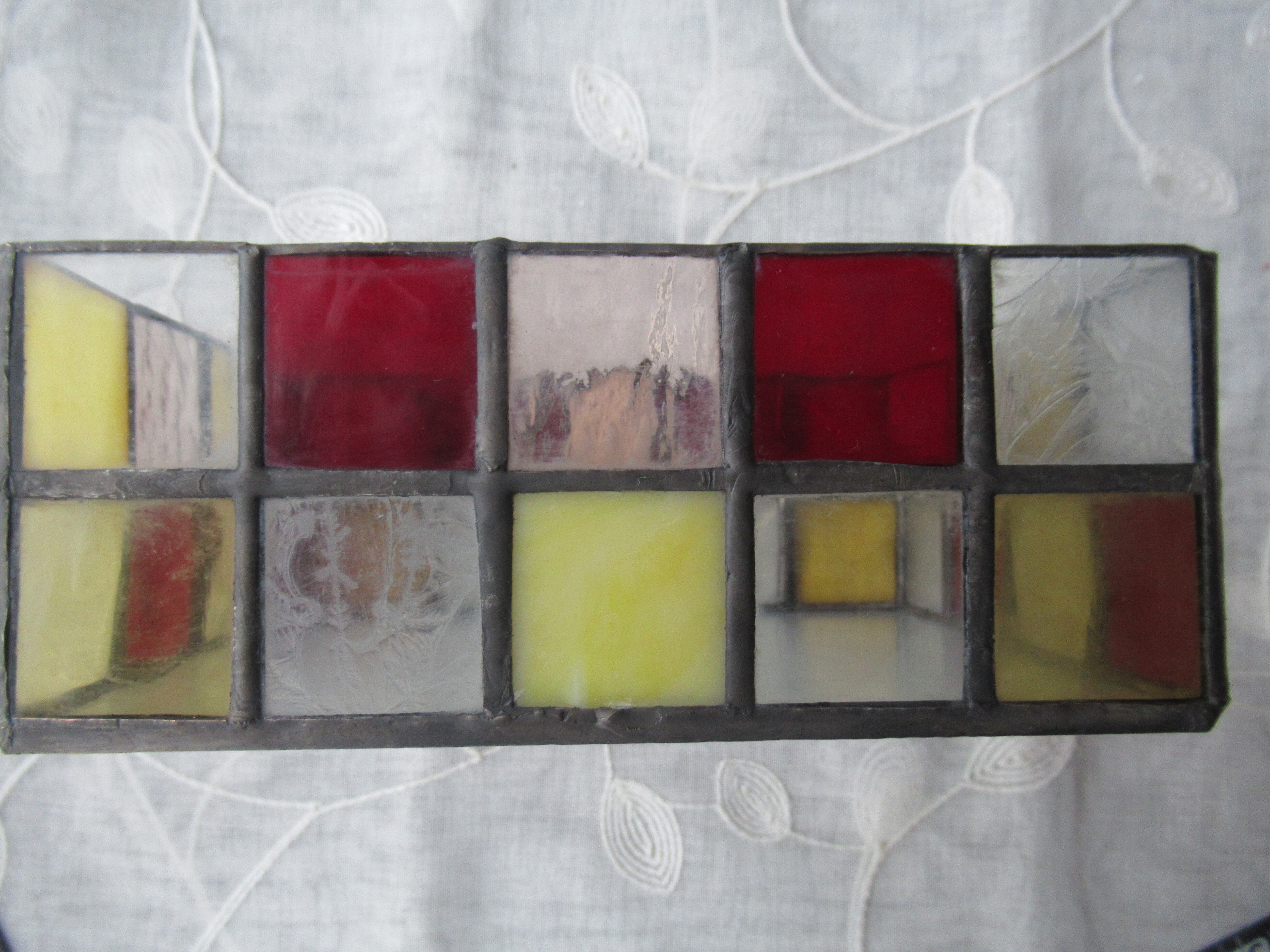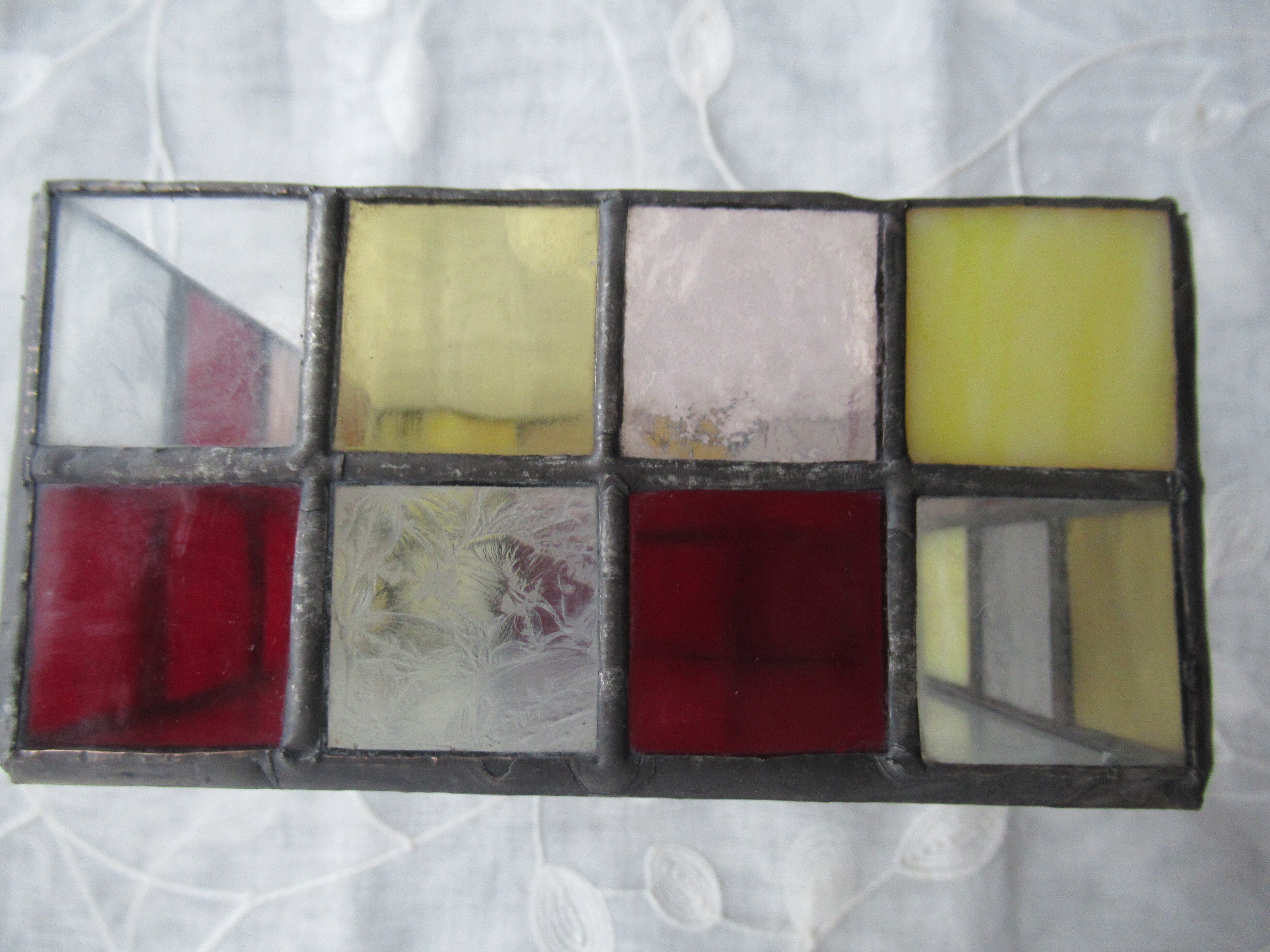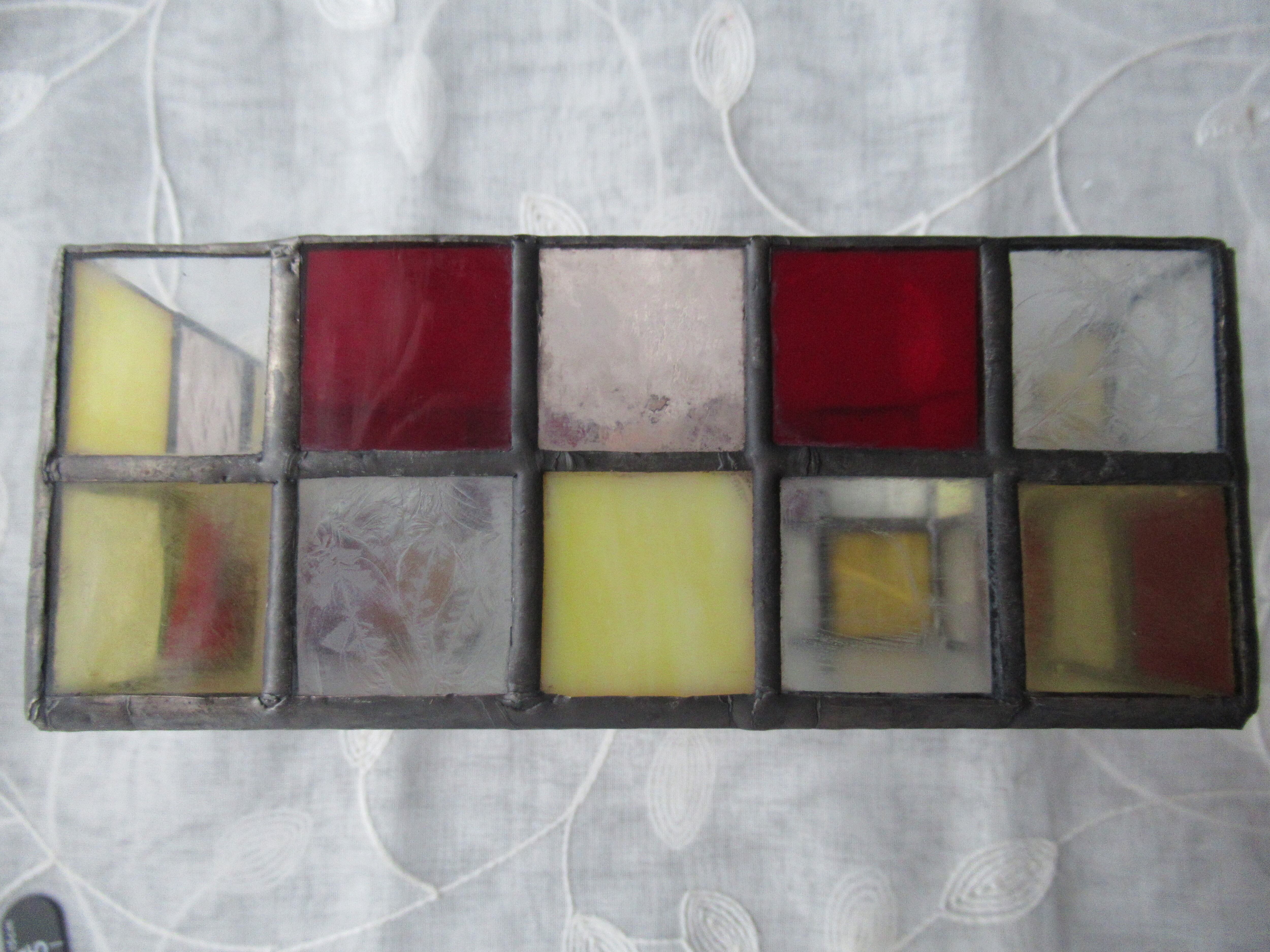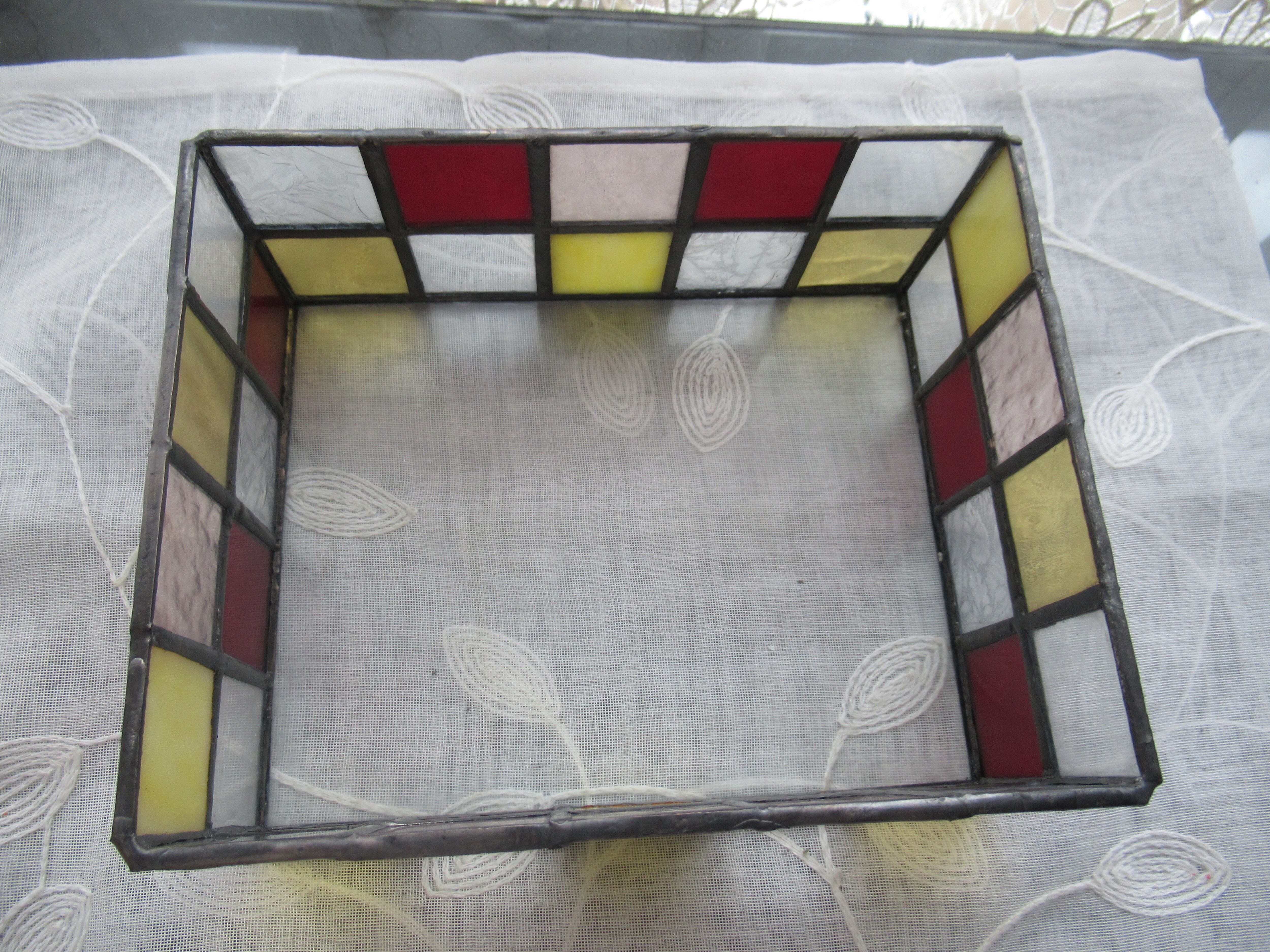 ※はんだ部分はポリワックスで磨いていますが、ステンドグラス特有の白っぽい錆が発生することがあります。気になる場合は、優しくポリワックスで拭くときれいになりますが、強くこすると色落ちの原因になりますのでご注意ください。