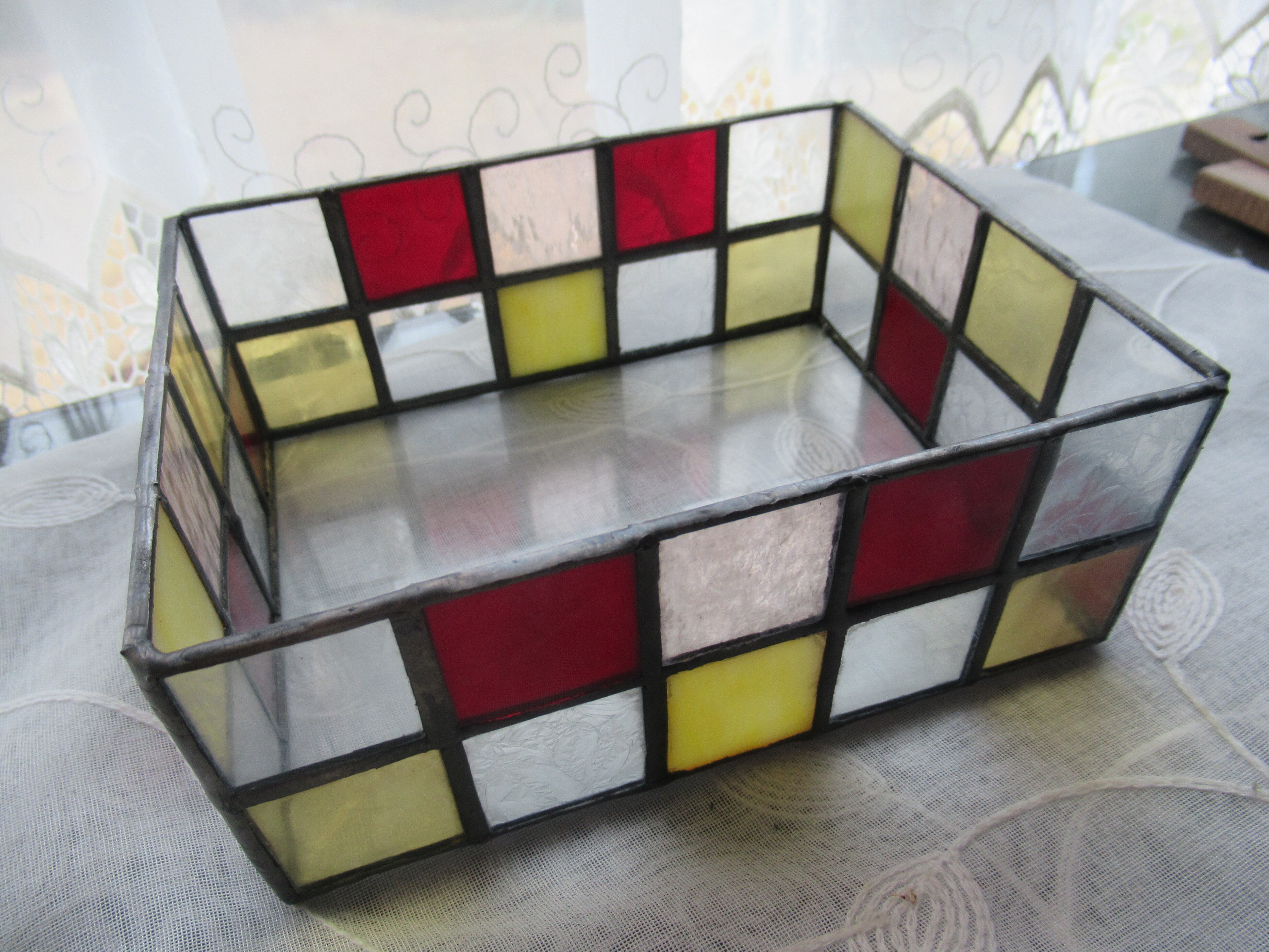 色とりどりのレッド、ピンク、イエローが組み合わさった可愛いデザインのボックスです。2種類の透明ガラスを使用し、光を受けて幻想的に輝く様子はお部屋をおしゃれに演出します。安心の鉛フリーで作られているため、安全性にも配慮した商品となっています。